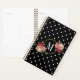 Stylish Black Vintage Blush Flowers Dots Monogram Planner