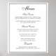 Position this wedding menu poster in a prominent place for your guests to see. This menu is on a white background with black text.