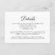 This stylish, classic wedding details enclosure card features the title in elegant black script and the text in small capital fonts in black on a white background. The reverse is solid black.