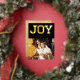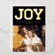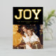 Classy And Stylish 'JOY' Typography Block Faux Gold Glitter On Black, Modern REAL Foil Pressed Holiday Photo Card.