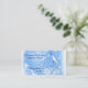 Elegant business card, with stylish floral flourishes, in white and dark blue, against a light blue background, with a white silhouette of a bird sitting on the tip of a leaf. Text in dark blue is fully customisable to suit your business needs. Lovely card suitable for many different occupations and businesses.