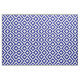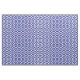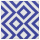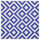 Stylish fabric features a bold, geometric blue and white meander pattern. The original ornamental design has white meanders that angle around dark blue diamonds containing white diamonds. Navy zigzags provide subtle separation between the winding paths.