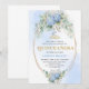 Stylish Blue Floral Gold Quinceañera Invitation
