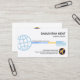 At the top is your prestigious name and the job title alongside a slogan option near the blue globe. Towards the base beside a gold aeroplane logo you can use, is the business name and its contact details.