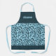 Trendy feminine apron featuring a stylish light blue leopard spot print pattern; customisable by adding your name in light blue lettering on the stripe on the upper part