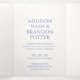 Elegant wedding tri-fold invitation featuring a classic design with a simple layout. Your names and wedding date are prominently displayed in a large traditional serif font. The simplicity of this design is great for a formal wedding.