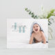 Stylish Blue Monogram Baby Photo Birth Announcement