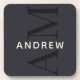 This stylish dark navy blue coaster features a modern layout with vertical monogram in big type, and your name in simple prominent horizontal type.