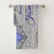 stylish blue purple silver glitter leaves monogram towel set. Upgrade the look of your bathroom decor with a girly, trendy and modern towel set. It makes the perfect sweet 16 birthday, wedding, bridal shower, anniversary, baby shower or bachelorette party gift for someone that loves glam luxury and chic styles. Whether for valentines day, Christmas or any occasion in general this towel set will make a great gift idea for any girl or woman who loves modern sparkly elegance. PLEASE NOTE: These are flat printed graphics - no real glitter, jewels or raised parts.