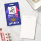 At the top of the badge is a photo template to upload photos with a size of 1,000 x 1,000 pix. Just below the photo template are your prestigious name and job title followed by an optional faux gold global heartbeat logo. Near the base is a caption remark "security", you can change the caption remarks to suit your service needs.