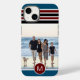 Stylish Blue Red Striped Monogram Custom Photo Case-Mate iPhone Case