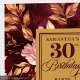 Featuring lush burgundy and blush blooms with shimmering gold accents, these napkins perfectly complement a 30th birthday party décor, from table settings to dessert displays. Their vibrant watercolor design brings a chic and modern aesthetic while keeping the party feeling warm and inviting.