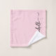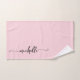 Chic Elegant Modern Monogram Name Signature Script Custom Personalised Blush Pink Bath Towel Set. This delicate design featuring custom name in a cursive hand lettered swash tail font typography or calligraphy in black on blush pink or baby pink colour background. Great stylish feminine housewarming gift, also for birthday, bridal shower, wedding, bachelorette party, sweet 16 birthday party, mother’s day, anniversary gift and for graduation party and It’s for the girl who likes stylish elegant things.