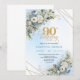 Stylish Boho Dusty Blue Gold Accent 90th Birthday Invitation