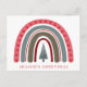 A whimsical, colourful, boho Christmas rainbow and "Season's Greetings" typography personalised Christmas holiday postcard.