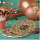 Beautiful and stylish paper party plates features stencil style gold dahlias floral pattern on dark brown background.   Centre circle to add couples monogram/ initials in gold font on brown background