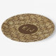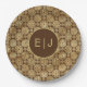 Stylish Brown & Gold Dahlias Pattern Monogram Paper Plate