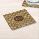 Stylish Brown & Gold Dahlias Pattern Monogram Square Paper Coaster