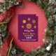 This elegant Christmas invitation to a Secret Santa party is featuring a minimal, simple design with different geometric gold foil snowflakes and a bold customisable typography on a burnt burgundy background.