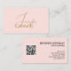 Stylish Business Card with Blush Pink QR Code. Minimalist professional with elegant handwritten script.