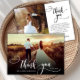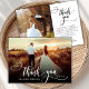 Elegant Modern Chic Boho Calligraphy Wedding 2 Photo Thank You Card. Stylish Simple wedding thank you template featuring a full vertical photo on the front with the text "Thank You" in a whimsical swirly hand lettering typography script swash tail font white overlay on the picture and a reverse side one (1) photo and pre-made thank you message. 2-sided card with 2 photo. Easily to personalise your details and message. If you prefer to handwrite your note, just delete the sample text to make more space. If You need help or matching item, please contact to me!