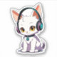 Stylish white cute cat wearing headphones, consider it for cat lovers!