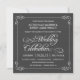 Chalkboard Typographic Wedding Invitations -- Swirly, curly scrolls and fancy rustic frame on slate grey blackboard. Add the names and wedding info in this easy to use template. Vintage style chalk calligraphy and whimsical script typography - change the font styles to reflect your formal or semi-formal retro wedding theme. Square chalk board invitation style is perfect for trendy modern weddings with a fun touch of sophisticated charm for the traditional bride and groom. Affordable prices for brides on a budget. NOTE: This product design is set-up for square cards only, which requires extra postage.