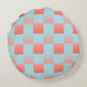 Stylish chequered gradient powder blue coral pink round cushion