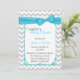 Stylish couple's baby shower invitation done in a light grey and white chevron zigzag pattern. Graphics of a turquoise decorative edged white text area, in the middle, has a pretty turquoise ribbon and bow, at the top. The backside is done in the same chevron pattern, with another white text area, at the bottom. Personalise all the text, front and back to suit your event needs.