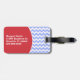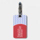 Stylish Summer fun luggage tag done in a blue and white trendy chevron pattern. The front of the tag has a muted red coloured silhouette of a crab, and the back has a circular red text area, on the left. White text is ready to personalise. Great for luggage and more.