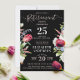 This elegant Stylish Chic Black Lavender Wild Flower Retirement Invitation features a bohemian floral design with wildflowers on a chic black background. The modern script in pastel pink and white combines with classical typography to create a sophisticated feel. The design showcases a retro vintage illustration of magenta red tulips, green leaves, and lavender blue and white wildflowers, evoking the essence of a beautiful garden in full bloom. The reverse side is solid black, and all text is customisable. Available in both print and digital formats, you can personalise your invitation to perfection. Explore colour variations and the full collection. Order now!