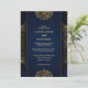 Stylish chic blue gold flowers pattern wedding Invitation