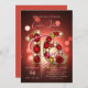 This dazzling Sweet 16 invitation is a celebration in itself, featuring a "16" sculpted from radiant ruby red jewels and lustrous pearls, creating a truly regal centerpiece. A vibrant red rose, blooming with rich detail, anchors the design. The deep maroon background, softly blurred with enchanting bokeh lights, sets an elegant and magical tone. Delicate script personalises the invitation, making it a perfect prelude to an unforgettable celebration.