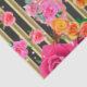 Fancy floral tissue paper design featuring roses on a gold and black vertical striped background.
