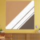This modern, sleek design features three right corner white different width, diagonal parallel stripes against vibrant mocha and soft brown backgrounds.