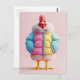 Stylish Chicken in Colourful Winter Puffer Jacket Postcard