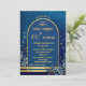 Stylish Classic Blue Gold Floral Birthday Invitation