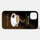 © Sunny Mars Designs. Coffee Cup iPhone Case-Mate Case Covers - Cool, brown and white cafe 'coffee lover' with a modern, trendy, stylish, cute, stylised graphic illustration icon design of a steaming mug or cup of coffee and saucer. Customise it by adding your own name or other text to it. Perfect for coffee lovers and coffee shop employees.