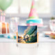 This surfer whiskey glass is decorated with a man surfer surfing a big wave at North Shore, Oahu. The image is on both sides and North Shore, Oahu is printed on both sides. This image is very impressive and stunning.