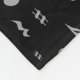 Stylish contemporary black white and grey circular piano design with various musical notes in a circular pattern in the middle. the background features random musical notes in mid grey on black