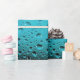 ©PLdesign photo of water drops in blue colour gift wrap paper.