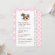 Stylish couple's baby shower invitation done in layered 3D look, with a pink and white polka dot pattern, on the bottom and a scalloped edge white text area, on the left. graphics of a white satin ribbon looks as if it is woven in and out along the scalloped edge and a brown and pink rocking horse, decorates the top middle of the white text area. Text is ready to personalise for your special event. Lovely invitation the couple will cherish.