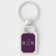 A perfect personalised monogrammed keychain featuring elegant light beige initials on a rich dark purple background. Perfect for couples,