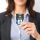 Overleaf, in a dark blue cover, the gold logo is at the top. If you decide to replace the logo with a photo, the size is 1,000 x 1,000 pix. After this is the remarks caption "If lost return to". Change the caption to suit your service needs. Next comes your name, employee no, contact details and a slogan to publicize your services.