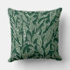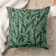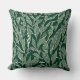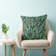 This cushion has a modern and sophisticated design with a natural leaf pattern drawn in white on a green background.