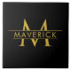 Stylish Custom Name Monogram Black Tile