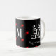 Stylish Custom Valentine's Day U R MY MVP Monogram Coffee Mug , with bold typography against a BLACK background with red hearts. Underneath is a placeholder greeting, which you can personalise by changing the greeting or adding your name. This MVP Valentine's mug is a great way to show appreciation to your loved one as your most valued person/player on Valentine's Day. The design is repeated on the reverse and in the middle there is a CUSTOMIZABLE MONOGRAM, where you can add your initial. Choose from a wide selection of Valentine's Day designs on cards, invitations, home decor, clothing and gifts, designed by Berean Designs.