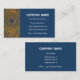 A stylish business card with an abstract pattern of swirls in shades of orange, yellow and green, with white lettering on a dark blue background. Ready for you to customize with your own details.