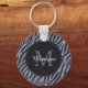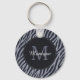 Stylish Dark Grey Zebra Print Monogram and Name Key Ring