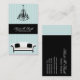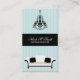 Designer business cards featuring a stylish sofa and a beautiful chandelier.
